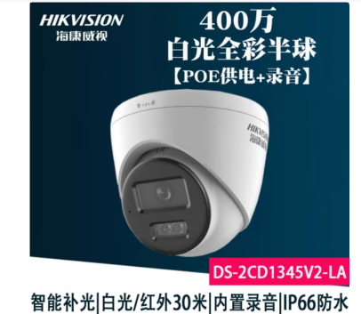 海康威视/HIKVISION DS-2CD1345V2-LA 监控摄像机 全彩夜视双光补光手机远程高清摄影头