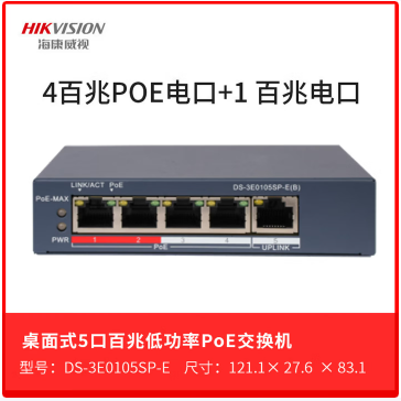 海康威视/HIKVISION DS-3E0105SP-E 以太网交换机 百兆PoE电口