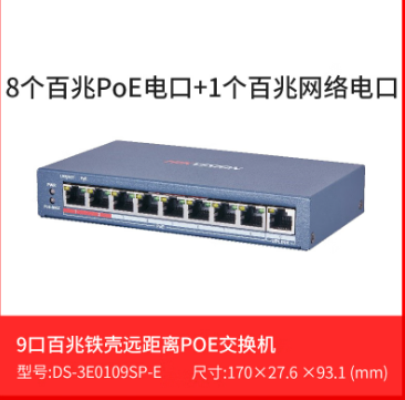 海康威视/HIKVISION DS-3E0109SP-E 以太网交换机 百兆监控POE交换机