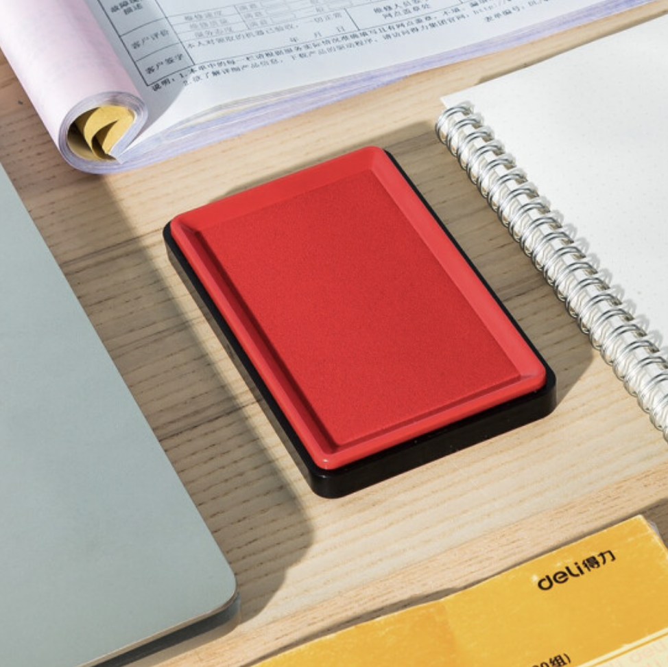 得力/deli 9864ES 印台/印泥/印油 升级红/方形油性透明盖 快干印台速干银行财务盖章用印油秒干按手印指纹印章印泥盒