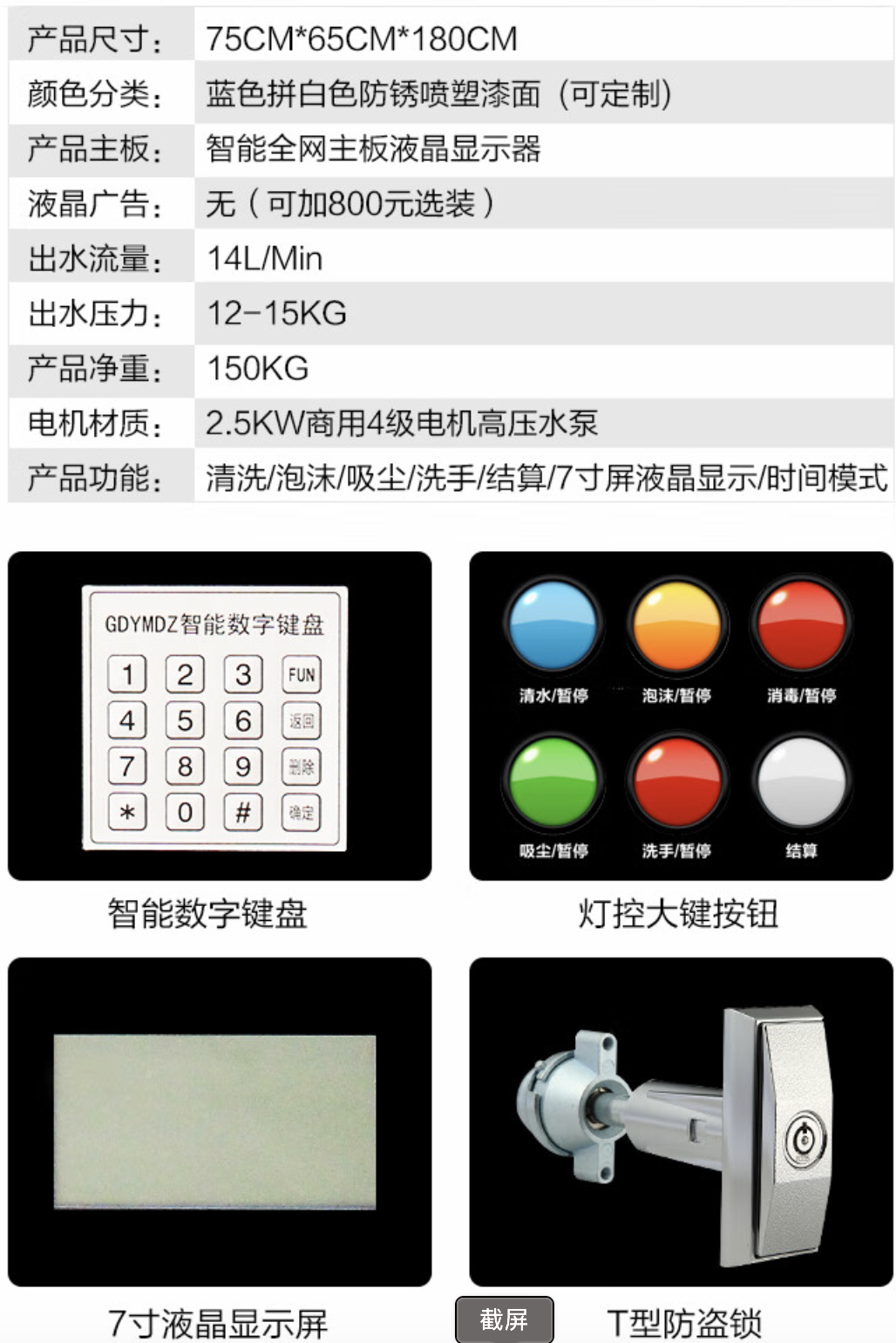 知链 ZL-2500W 清洗机 自助洗车全自动智能共享刷车设备 2.5KW静音电机双枪数字键盘