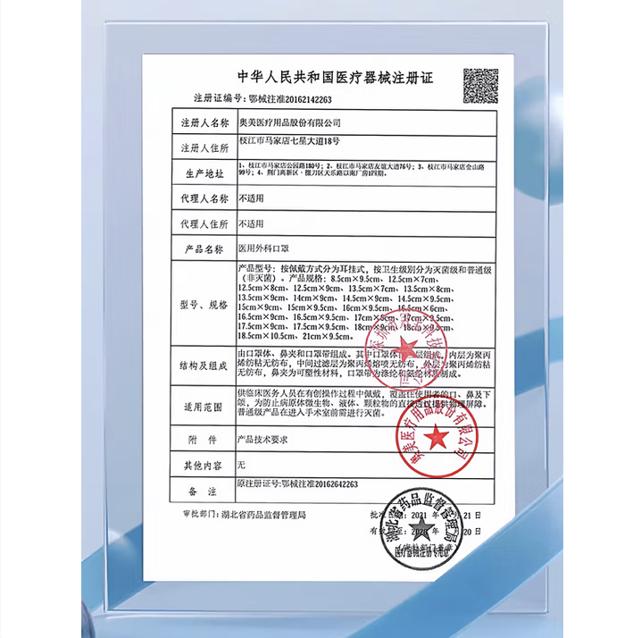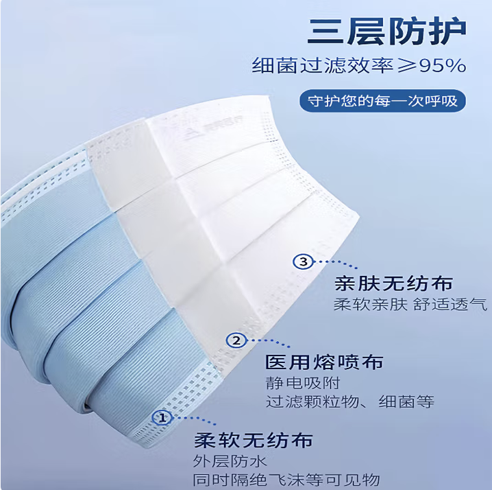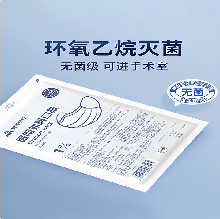 奥美 AM-50 防护口罩 一次性三层防护级无菌型轻薄透气独立装