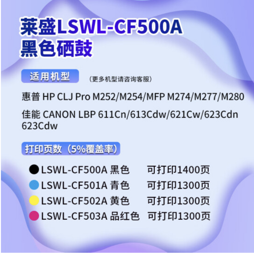 莱盛 CF501A 硒鼓 青色 202A粉盒 适用惠普M252 M254 M274 M277 M280 M281佳能635Cx 641Cw 643Cdw CRG045墨盒